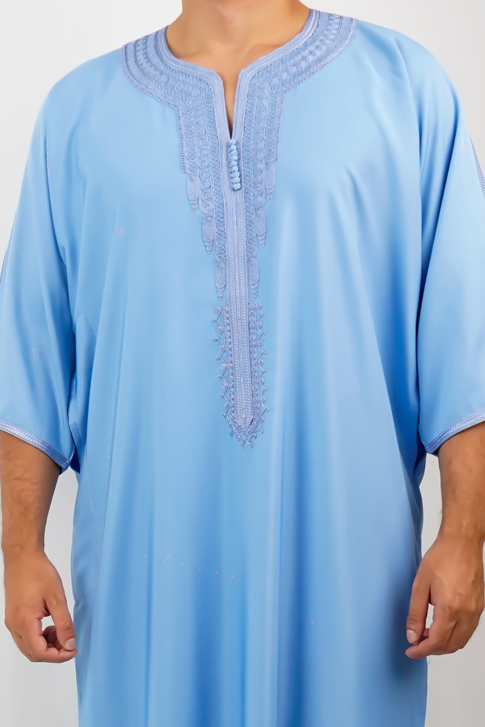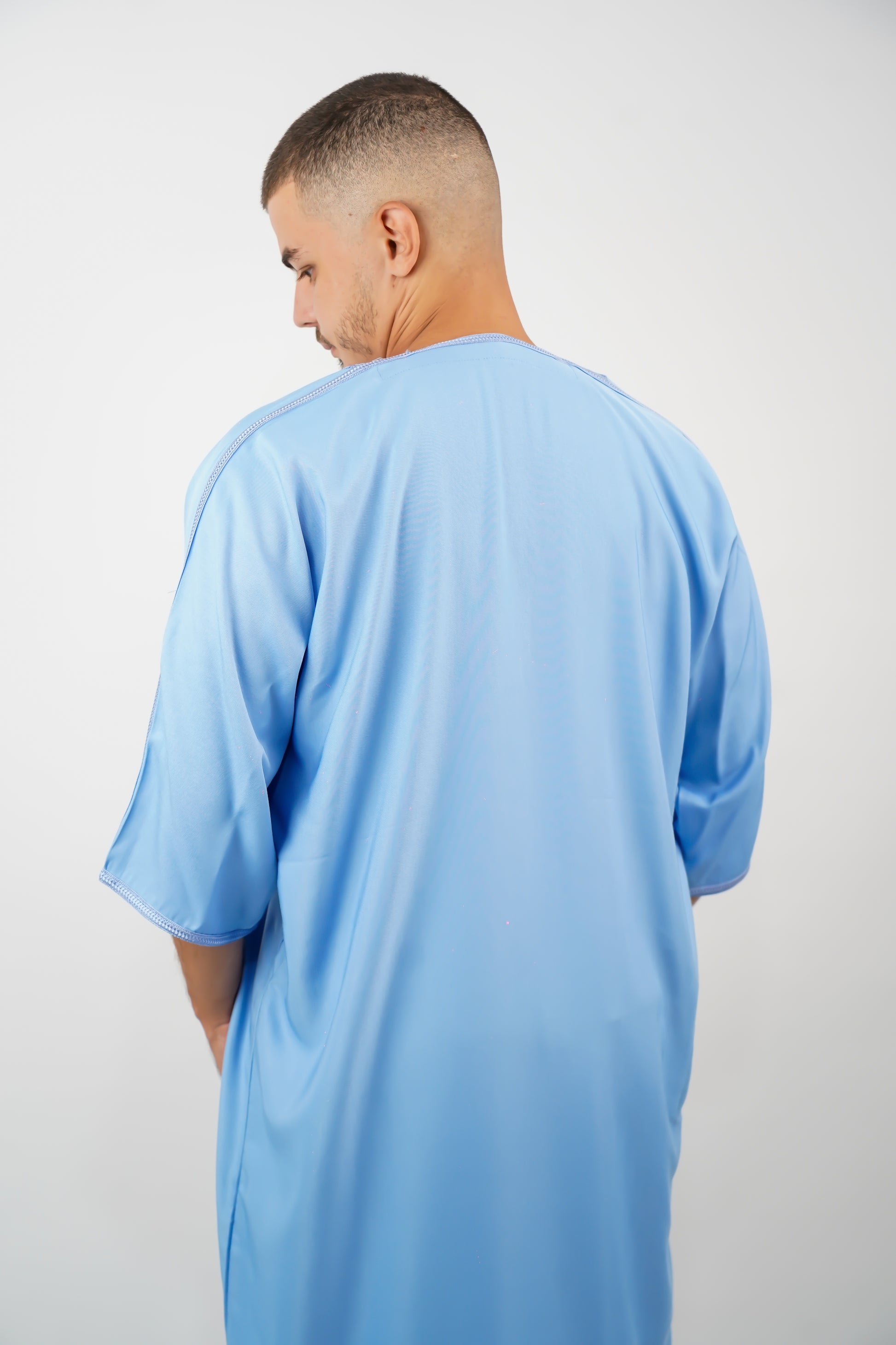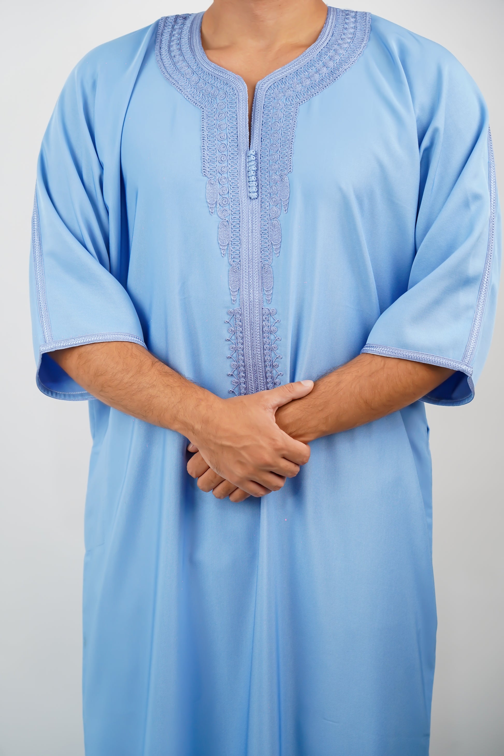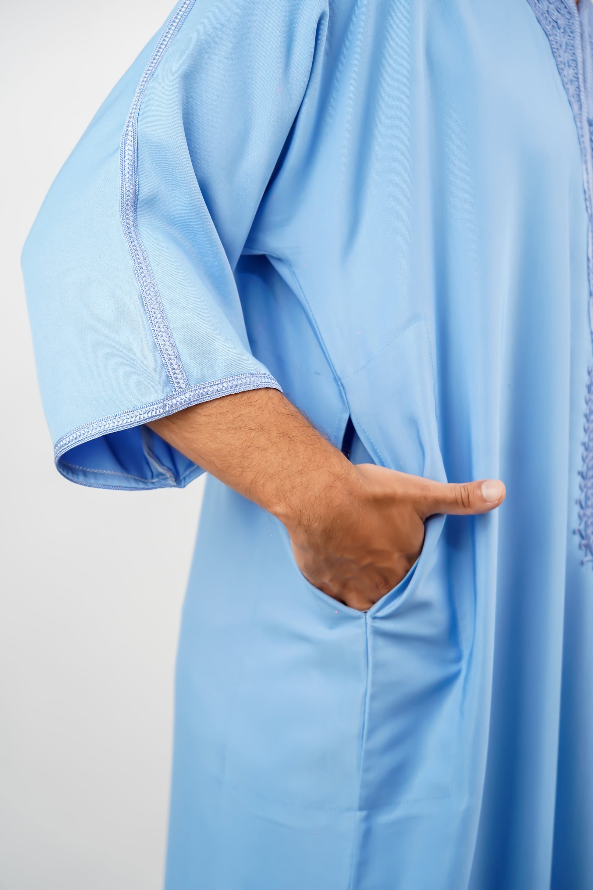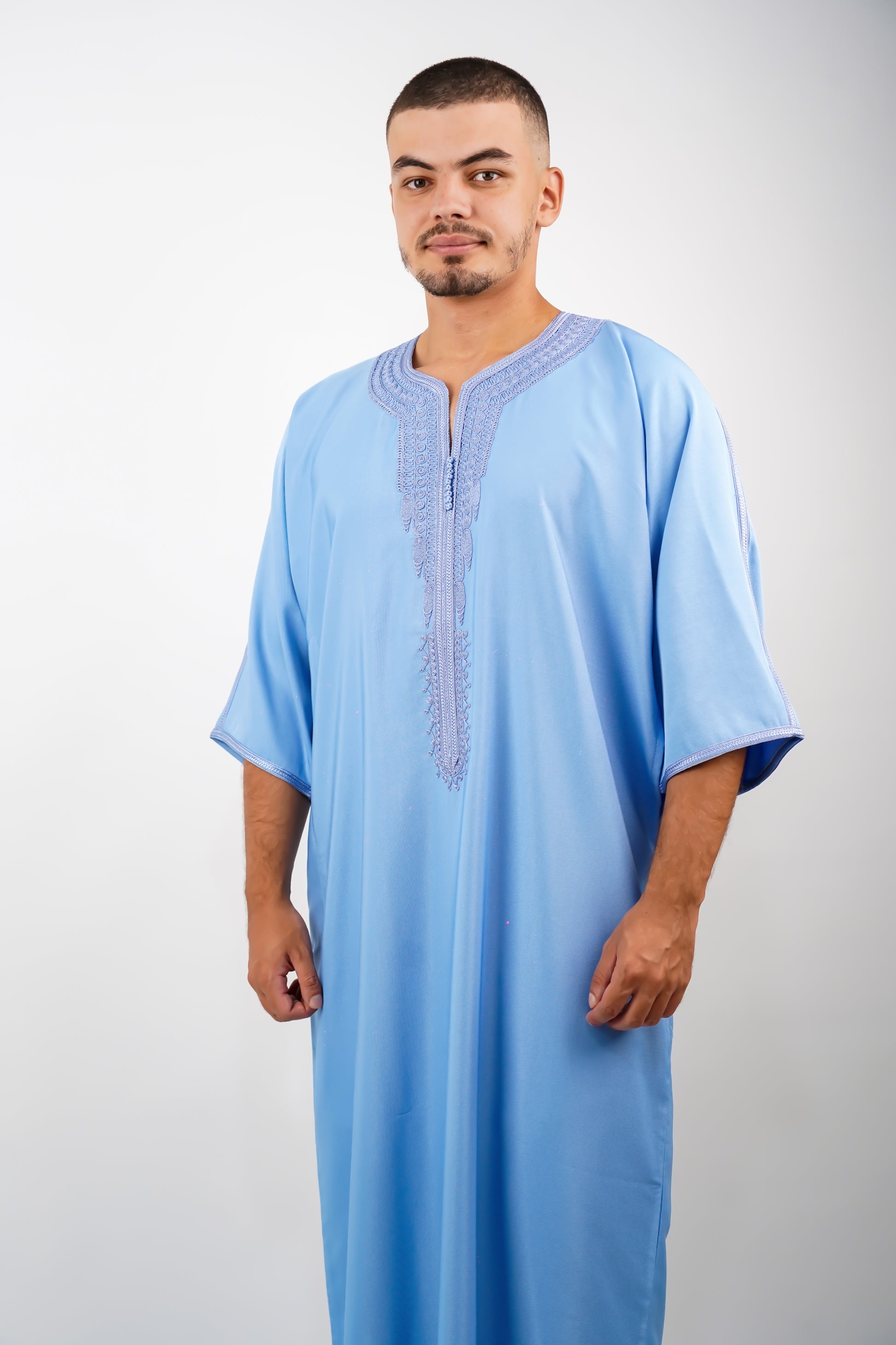The Ice Blue Gandoura is a versatile and stylish addition to any wardrobe. The premium blend of soft and breathable materials promises comfort and ease of movement, making it the ideal choice for any occasion. The traditional design is updated with a modern twist, featuring subtle nautical accents that pay homage to Morocco's beauty.